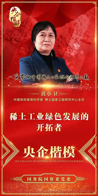 首席科学家稀土国家工程研究中心主任黄小卫院士荣获“央企楷模”称号!