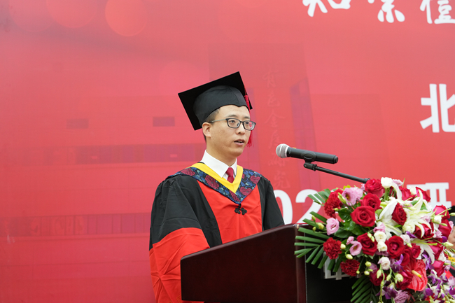 博士生导师张永安作为导师代表向圆满完成学业、迈向人生新阶段的毕业生们深切寄语。他希望,毕业生们要志存高远,勇立创新潮头;要勇毅笃行,敢于拥抱变化;要勇于担当,彰显家国情怀。