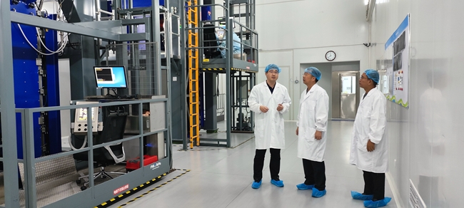 赵晓晨先后来到区熔硅单晶车间和12英寸硅片研发中心,向现场技术人员了解8英寸区熔硅单晶及12英寸硅片项目的研发进展及市场推进情况,并对创新过程中的关键技术问题进行交流。