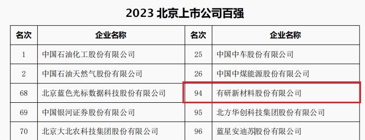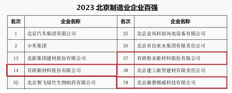 粉材、康普锡威分别荣登北京企业百强、北京制造业企业百强、北京上市公司百强、北京专精特新企业百强四大榜单。