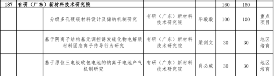 广东院共有3个项目获批粤佛联合基金,其中全固态电池领域1人获批地区培育项目,钠离子电池领域2人分别获批重点项目和地区培育项目支持。