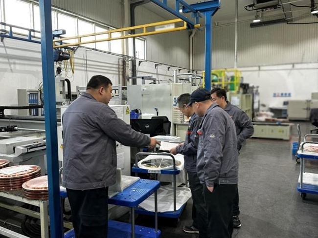 工研院确保多枪大型真空电子束熔炼设备的吊装发货按时完成;根据订单倒排屏蔽材料产线和吸气材料产线生产任务;全力保障重点产品的供货进度。