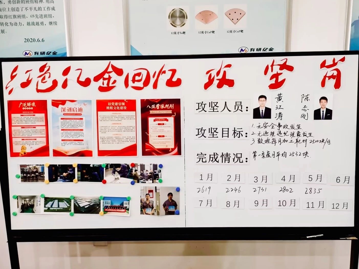 亿金的产业工人紧跟时代潮流,充分抓住溅射靶材国产化的机遇,在产业化关键时期,技能人才骨干从专一负责本职工作到多技能工的穿插协调支援,从“一人单机”到“一人多机”,从“早来晚走”到“12h对12h”倒班。正因如此,市场需求计划、公司总体产量屡创新高。困难并没有撕裂团结,反而让大家更加紧密地团结在一起,相互支持、相互鼓励,共同战胜前进路上的艰难险阻。
