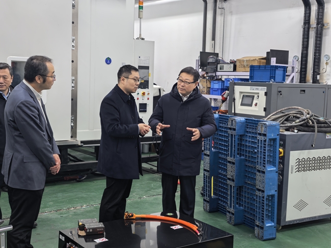 艾磊一行参观了国联研究院全固态电池试验线、电池检测实验室和动力电池中试线等,详细了解设备运行、产品研发、工艺流程等情况。