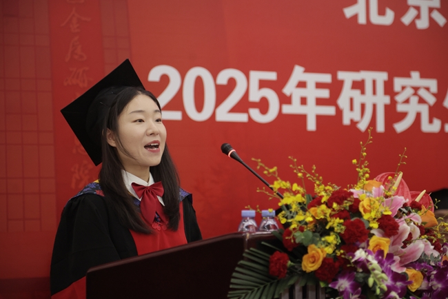 赵晓晨在致辞中首先向2025届毕业生表示最热烈的祝贺,向辛勤培育的导师们和默默支持的家属们表示最衷心的感谢,并向毕业生提出三点期许。