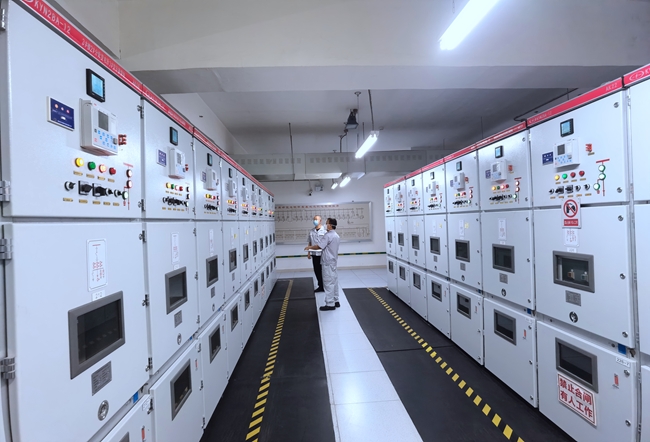 兴友总配电室值班人员检查配电设备运行状态