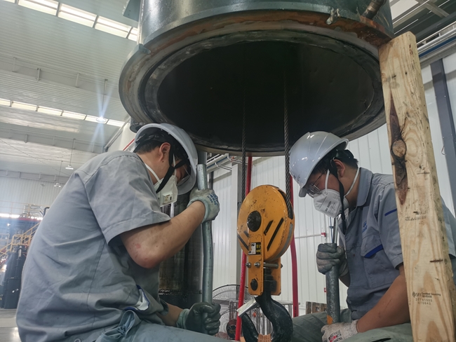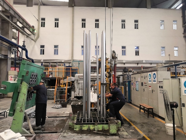 复材生产部员工正在进行铝硅合金铸棒的生产
