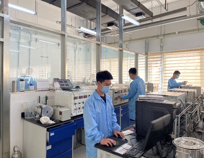 工研院新能源事业部员工正在进行储氢材料性能测试
