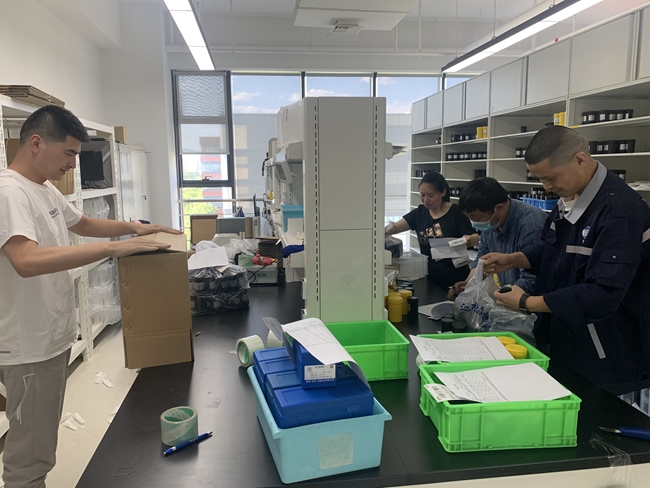 国合通测生产运营部员工正在忙碌地打包产品,确保客户节后第一天能顺利收到货物