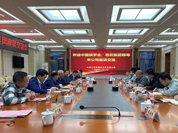 集团党委书记、董事长赵晓晨,副总经理周旗钢一行到中核北方核燃料元件有限公司访问交流,全国政协常委、中国核学会理事会党委书记、理事长王寿君受邀一并前往。中核北方党委书记、董事长李卫东陪同参观座谈。