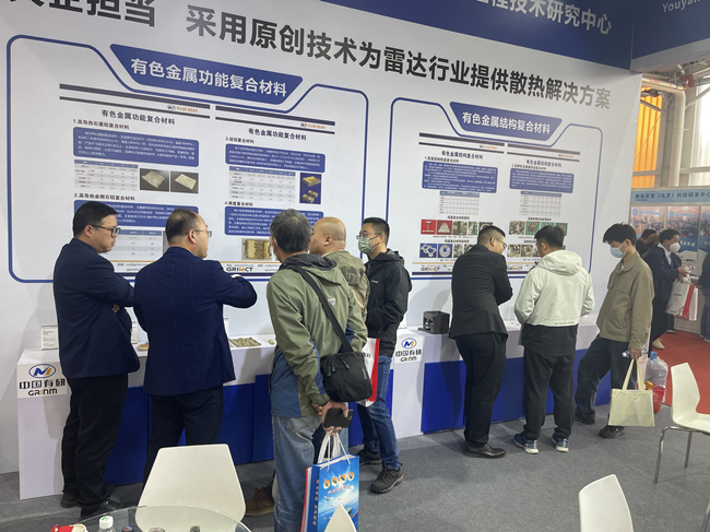 复材展台的“高导热石墨铝复合材料”“高导热金刚石铝复合材料”“硅铝复合材料”“梯度复合材料”“高强高韧铝基复合材料”“高精密高模量铝基复合材料”等产品备受关注。