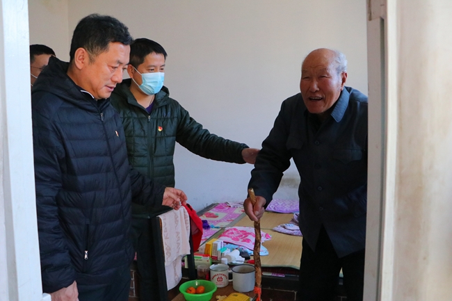 粉材党支部一行先后走访慰问了村里的老党员、老干部、困难户,为他们送去了米、面、油等慰问品,关心询问他们的身体状况和家庭情况。