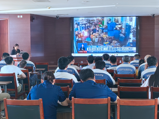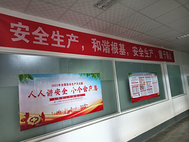 公司各部门积极开展安全知识目视化宣传活动。各事业部在生产车间、公共办公区、公告栏等张贴安全月宣传海报、安全标语、主题条幅等,通过目视化管理开展宣传活动;综合管理部、生产管理部、磁材事业部、光功能事业部利用大屏幕、电视每天滚动播放安全月相关专题片,利用班前班后会、用餐等碎片化时间强化安全宣传;金属事业部开展“安全生产大家谈”活动,各班组充分交流经验举措和意见建议;化合物事业部召开安全月专题会议,要求部门全体员工从自身做起,积极参加安全月活动,共同创造安全、和谐的工作环境。