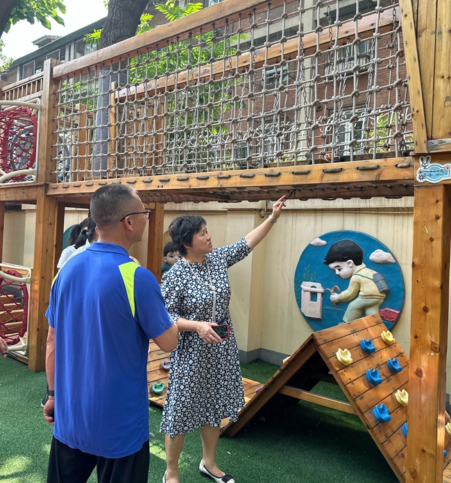 幼儿园开展安全自查,园所安全工作领导小组对总园及分园各班级、楼道、食堂和户外大型玩具等各区域开展安全隐患排查,对发现的问题及时登记隐患台账并积极整改。