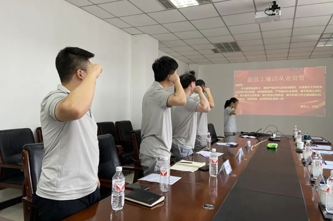 培训内容涉及市场发展、技术研发、生产制备、质量管理等多个板块,由公司部分部门领导及核心骨干人员担当授课讲师,全面增强了新员工对业务知识的了解。综合办公室经理张品为新入职员工讲授了保密知识,开展廉洁文化教育,并组织新员工进行了廉洁从业宣誓。