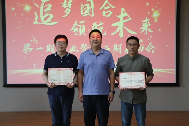 李继东介绍了追梦计划第一期取得的成果并宣读了毕业人才名单。公司领导和首席专家为第一期毕业人才颁发毕业证书。第一期优秀毕业人才代表陈雄飞分享了对人才培养的思考和收获,并作为领航人才介绍了带领团队的经验和心得。