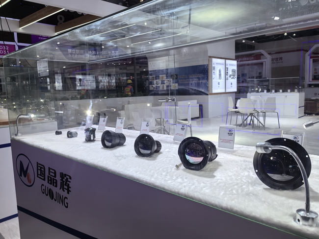 国晶辉集中展示了红外镜头、光学镜片及系列红外光学材料—CVD硫化锌、锗晶体、硅晶体、硫系玻璃等产品,公司产品广泛应用于红外热成像、安防监控等领域。