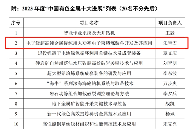 工研院“电子级超高纯金属提纯用大功率电子束熔炼装备开发及其应用”项目成功入选。