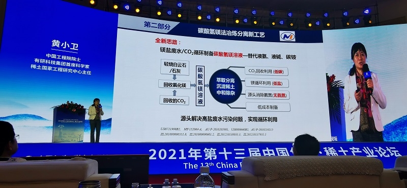 集团首席科学家、稀土国家工程研究中心主任黄小卫,以《科技创新助力稀土产业绿色高质量发展》为题做了主旨演讲。重点介绍了稀土行业发展态势、稀土矿提取分离技术创新及应用进展,以及稀土行业发展新动向和新趋势。