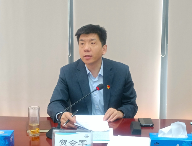 粉材党委书记、董事长、总经理贺会军出席会议并讲话,党委委员、副总经理胡强主持会议。