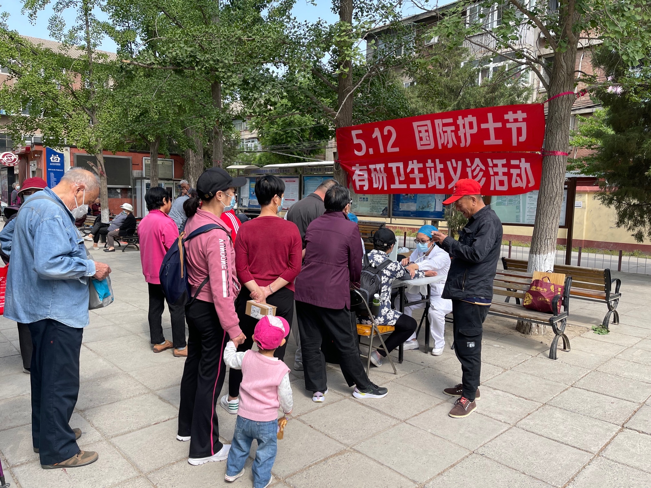 卫生站的医护人员为了迎接护士节在新外大街3号院社区广场举行义诊活动。公司领导看望了正在为义诊忙碌着的工作人员,走访了注射室、内科诊室、药房的医护人员,为她们献上鲜花,并致以节日的亲切慰问,感谢他们为了守护社区居民健康的辛勤付出。