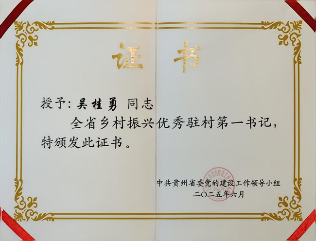 近日,集团派驻贵州省思南县挂职干部易见伟被思南县人民政府记三等功,吴桂勇荣获“全省乡村振兴优秀驻村第一书记”。