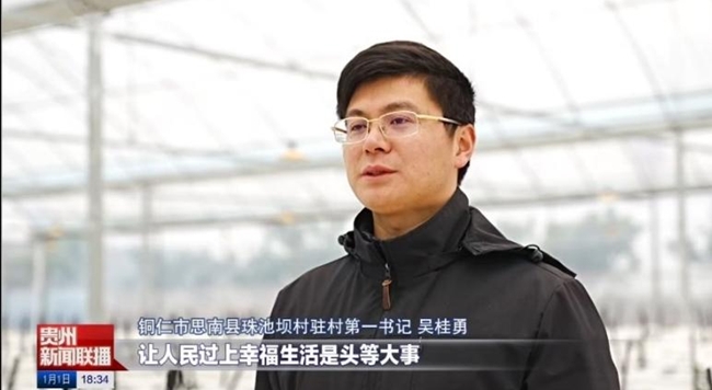 吴桂勇同志2023年挂职任思南县邵家桥镇珠池坝村第一书记。驻村以来,他带领村支“两委”班子以党建为引擎驱动珠池坝村发展,紧抓落实“三会一课”制度,为全村党员干部、村民等不同群体讲党课,宣讲党的创新理论和惠民政策,通过走访入户、村民大会、返乡人士座谈会等,凝聚广大党员干部和群众力量,共同建设乡村振兴示范点。聚集发展特色水果种植产业,他引入集团院士团队指导实施“稀土农用”项目,重点培育“一村一品”柚子产业,为珠池坝村打造四季都有采摘体验的观光休闲农业乡村,带动1000余脱贫人口增收、人均增收同比增长18%。积极挖掘当地“孝爱文化”“知青文化”等,构建集“知青屋”“清风阁”“名人阁”为一体的综合性人文历史教育基地,形成独具思南乌江文化特色旅游项目,年内吸引游客5万余人次,村集体旅游收入达200万元,帮助该村成功获评“贵州省甲级乡村旅游村寨”。完善“春晖积分超市”,充分激发村民参与乡风文明建设的内生动力,组织文化下乡和移风易俗系列活动,潜移默化提升村民文明素养,助力该村获得“全国文明村镇”。集团助力该村打造乡村振兴示范点作为特色项目入选《中央企业助力乡村振兴蓝皮书》。他的工作成绩赢得当地政府和百姓一致认可,今年1月作为全省驻村第一书记代表接受采访登上《贵州新闻联播》。