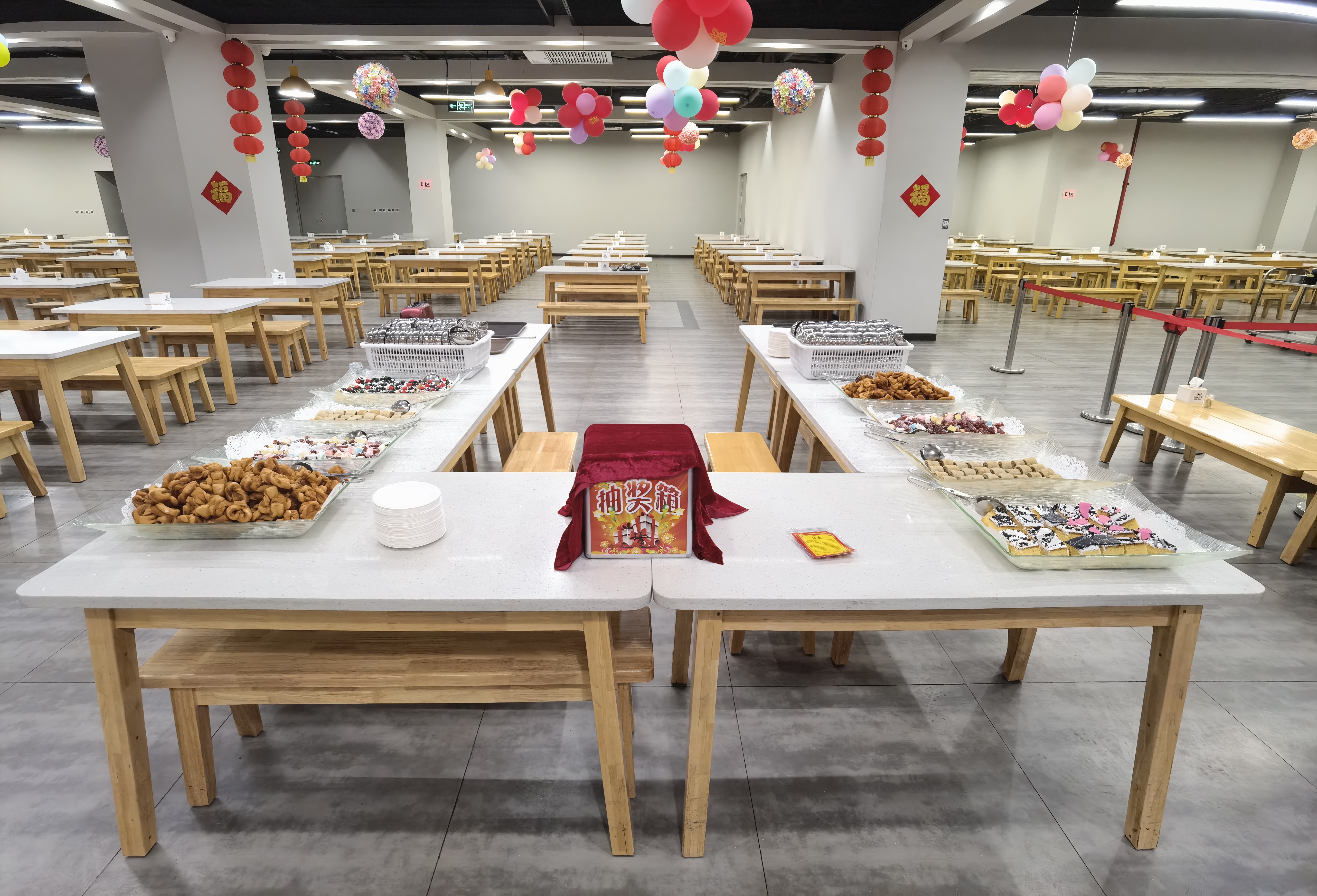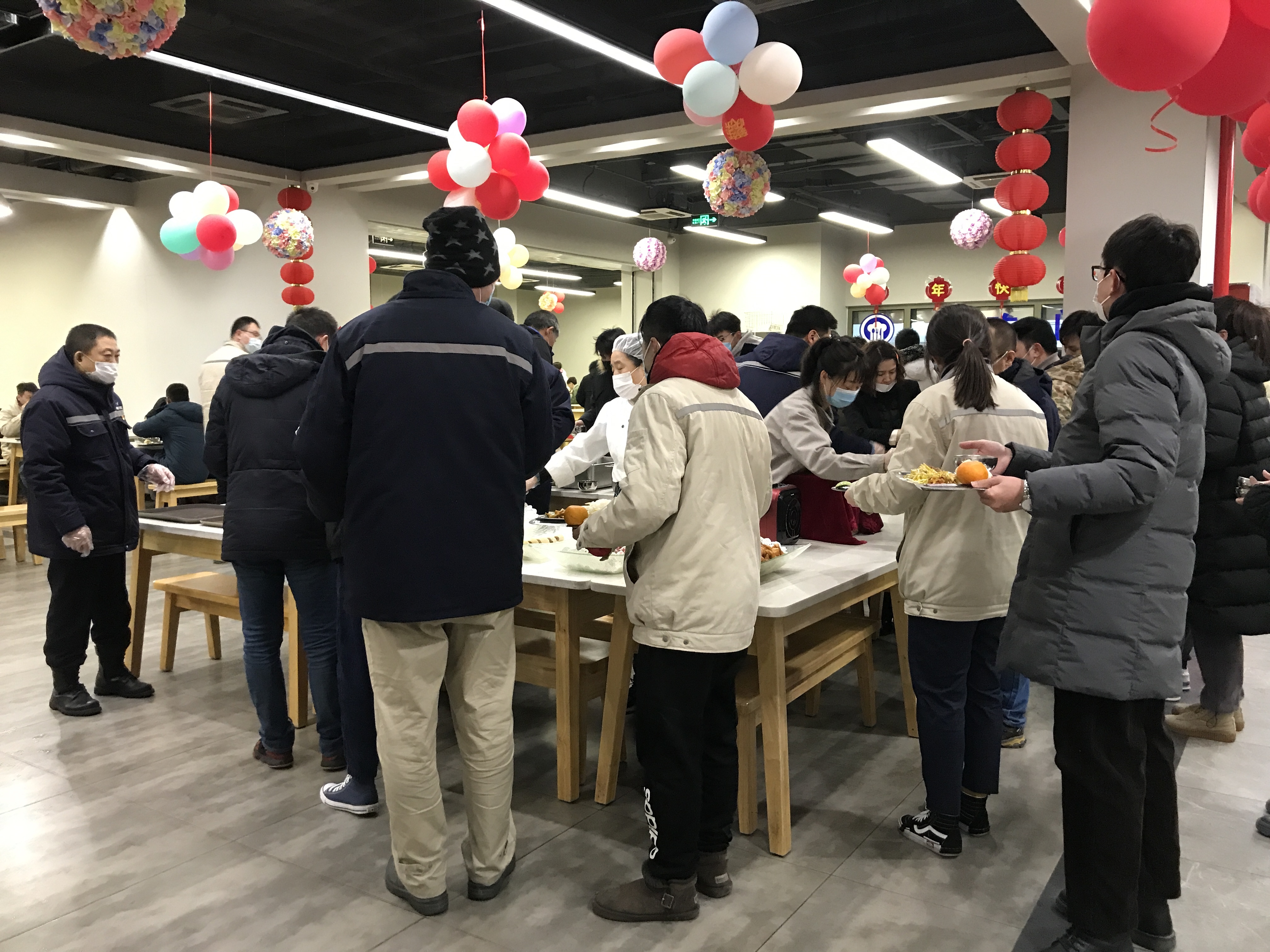 职工餐厅张灯结彩,宣传屏播放着精心准备的“元宵节”小视频。怀柔园区在餐厅入口处布置了猜谜区,为调动员工的积极性,增加活动的趣味性,园区特意准备了抽奖箱,猜出谜底的员工可凭谜面抽取小礼品。大家参与热情高涨,或单独思考、或三五成群交流讨论,活动现场洋溢着一片欢声笑语。猜谜之余,职工餐厅还为大家准备了美味的特色小食品和热乎乎的汤圆。二部园区不仅为职工准备了丰盛精美的菜肴,还特意采购新鲜的大虾端上餐桌。职工餐厅自制了香甜可口的汤圆,为每一位职工送上节日的温馨祝福。