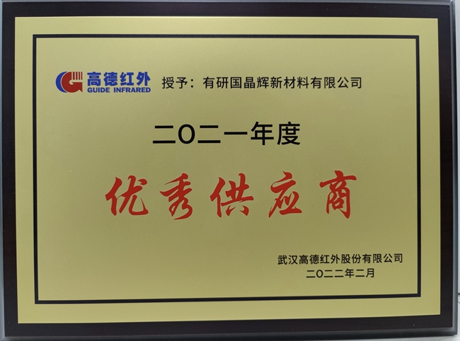 国晶辉新材料有限公司荣获武汉高德红外股份有限公司“2021年度优秀供应商”称号,表彰公司在2021年红外光学材料和镜片供应的优秀表现。
