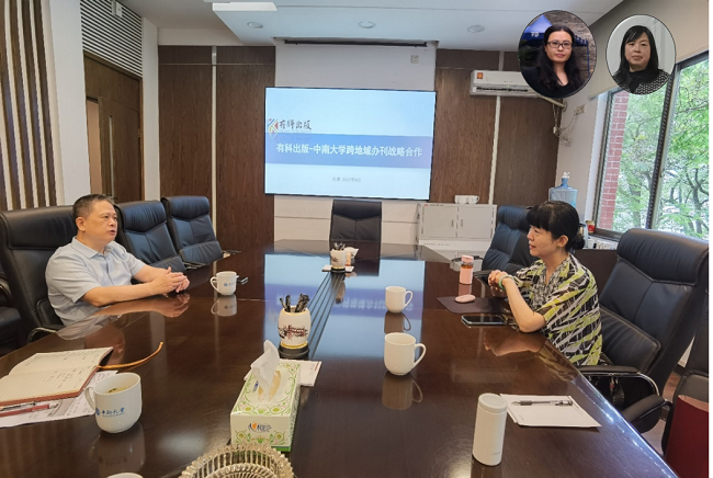 6月24日,有科出版董事长钱九红一行赴中南大学洽谈期刊出版合作事宜。中南大学副校长郭学益,中南大学出版社社长吴湘华,副社长杨保华、黄飞出席会议,中国有色金属学会副理事长兼秘书长高焕芝、副秘书长李芳线上参会。