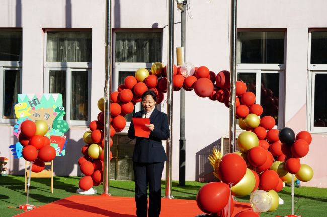 幼儿园全体师幼带着希望,带着憧憬,举行了新学期的开学典礼。大班升旗手高举着五星红旗入场,在庄严的国歌声中,五星红旗冉冉升起。国旗下,两园的执行园长和大班小朋友为新学期送上了美好的祝福。