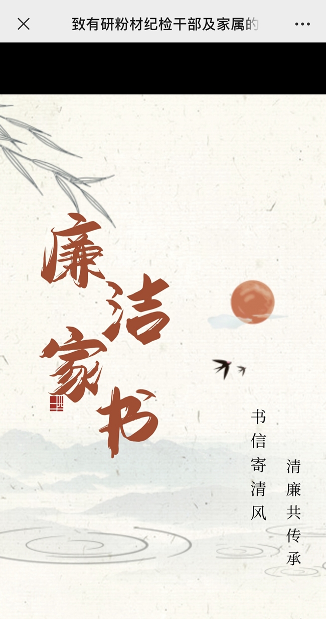 粉材纪委发放给公司纪检干部及家属一封廉洁家书,进一步教育党员干部廉洁用权、廉洁修身、廉洁齐家,同时倡导家属当好“廉内助”,发挥好家庭助学助廉作用,共同营造向上向善的家庭文明新风尚。