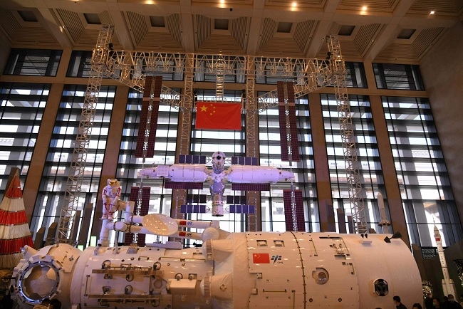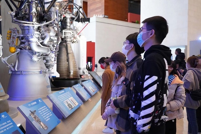 进入展厅,同学们仔细观察展品模型,大到火箭、发动机、空间站,小到航天食品、航天服等都能成功唤起大家的好奇心。一些研究生党员作为航天爱好者主动做起了讲解,分享航天工程与航天材料有关知识。大家时而专注交流,时而凝神观看,全身心地沉浸在丰富详实的展览内容之中。