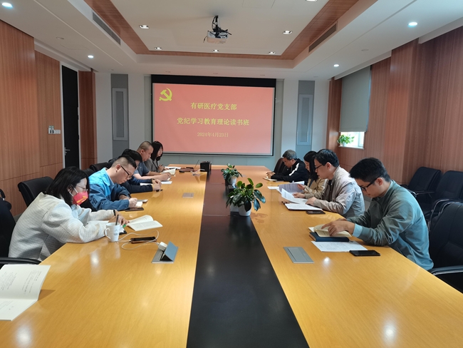 医疗党支部举办党纪学习教育理论读书班,公司党支部书记、总经理廖赞主持读书班,公司领导班子成员和党员参加学习。