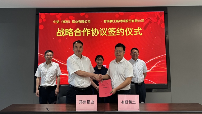 稀土与郑州铝业携手共进的崭新篇章。双方将通过沟通与合作,提升资源提取与利用水平,不断激发关键元素的应用潜力,进一步增强我国相关材料产品竞争力,推动产业高质量发展。