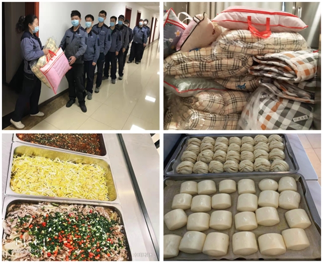 兵马未动,粮草先行,为保障基地员工生活,公司食堂紧急采购米面粮油等生活物资,确保封闭期间可保障基地人员至少半个月的生活需求。因疫情来势紧急,36名非住宿人员驻厂工作,公司紧急调配宿舍床位和棉被物资,保障他们在封闭期间的起居生活。厂区现有防疫物资充足,后勤保障稳定,为员工安心驻厂工作解决了后顾之忧。
