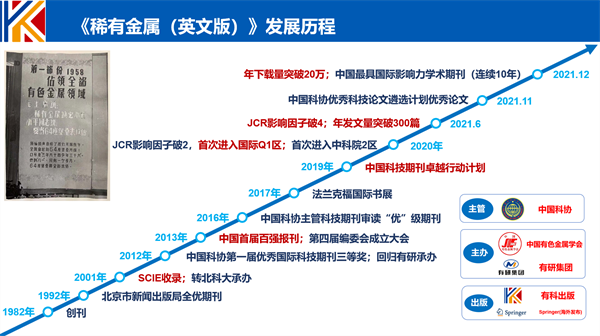 《稀有金属(英文版)》的发展,是自我革新的需要。为了满足新时代对科技文化的需求,《稀有金属(英文版)》始终坚持创新、锐意进取、不断革新。在期刊内容方面,期刊不再拘泥于传统冶金领域,兼容并蓄,将面向未来的能源材料、二维材料、催化材料纳入期刊范畴,做到新与旧的平衡,做到创新和传统的有机结合。在提高质量方面,期刊邀请了一批具有国际化视野的专家进行层层把关,严格筛选,优中选优,使期刊论文质量稳步提升。在平台建设方面,期刊重视服务效果,使用国际先进的投审稿系统,同时打造全方位的融媒体传播平台,增强作者和读者的体验感和科技感。在提升影响力方面,期刊积极宣传、努力合作,开展相关学术研讨会,提高在国内和国际的影响力。