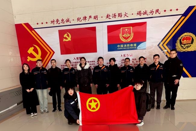 首先,团员青年到三河市应急消防科普教育基地进行实地参观。支队消防队员带领全员参观了队史馆和队员宿舍,介绍了消防车辆和常用消防救援器材装备的使用方法,让大家零距离接触消防设备,学习消防知识。