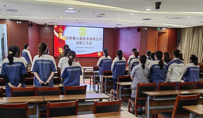 首届妇联执委会表示,将团结教育广大女职工,贯彻党的基本路线方针政策,发挥女职工聪明才智,维护女职工的合法权益,在建设中国式现代化、努力打造稀土材料原创技术策源地过程中,发挥女职工的集体力量。