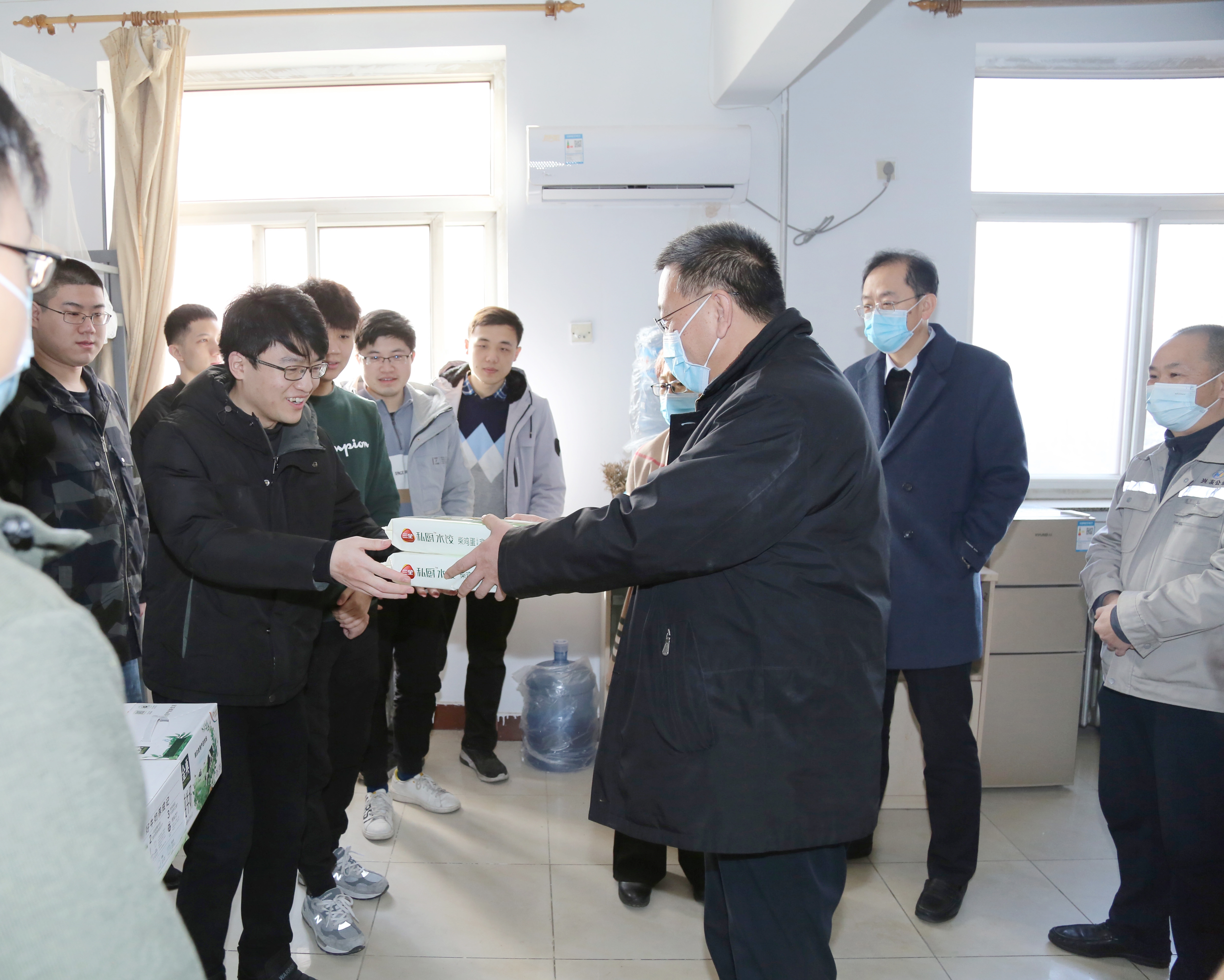 集团党委副书记、总经理熊柏青到研究生宿舍走访慰问,看望因科研学习和疫情防控等原因留院过年的研究生,为同学们送去了新春的祝福。