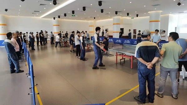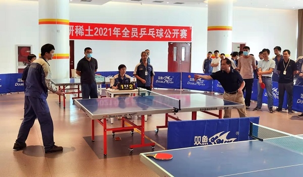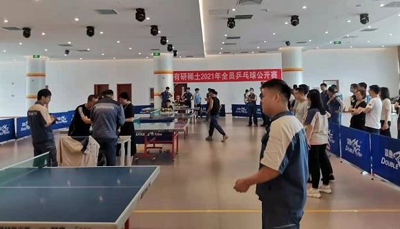 稀土2021年全员乒乓球比赛在燕郊基地拉开帷幕。公司党总支副书记、副总经理、工会主席许国栋宣布比赛开幕,裁判长栾文洲宣读比赛规则。