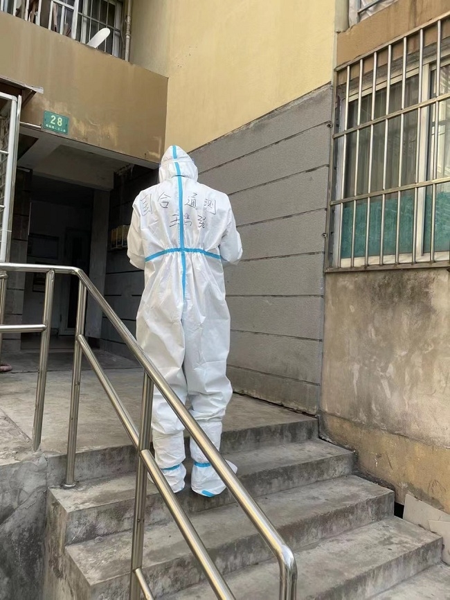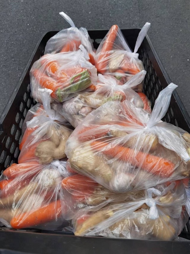 封控社区物资采购不便利,员工积极参与团购物资的发放。