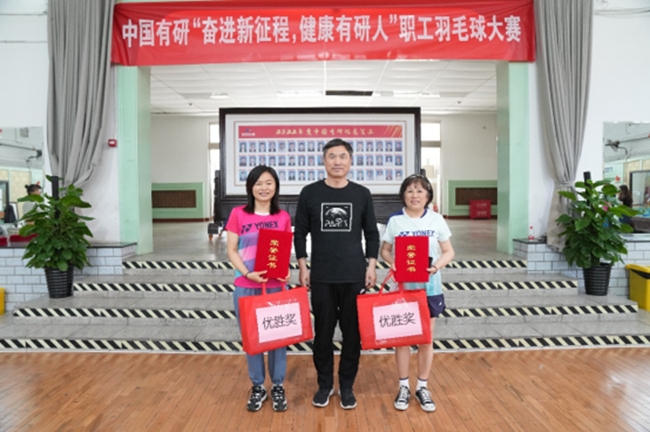 硅队、新材二队获得,优胜奖分别由职能-资环二队、复材-粉材三队获得。集团党委副书记、工会主席王兴权为获奖代表队颁发了奖品和证书,并与大家合影留念。