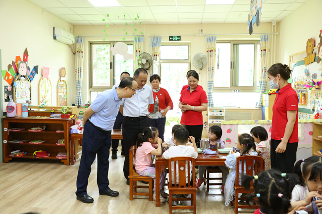 随后,毛昌辉走进幼儿园食堂,询问了孩子们的饮食及营养搭配,对幼儿园的伙食质量给予了充分的肯定,并走进美术教室及活动室,查看了幼儿的活动场所。