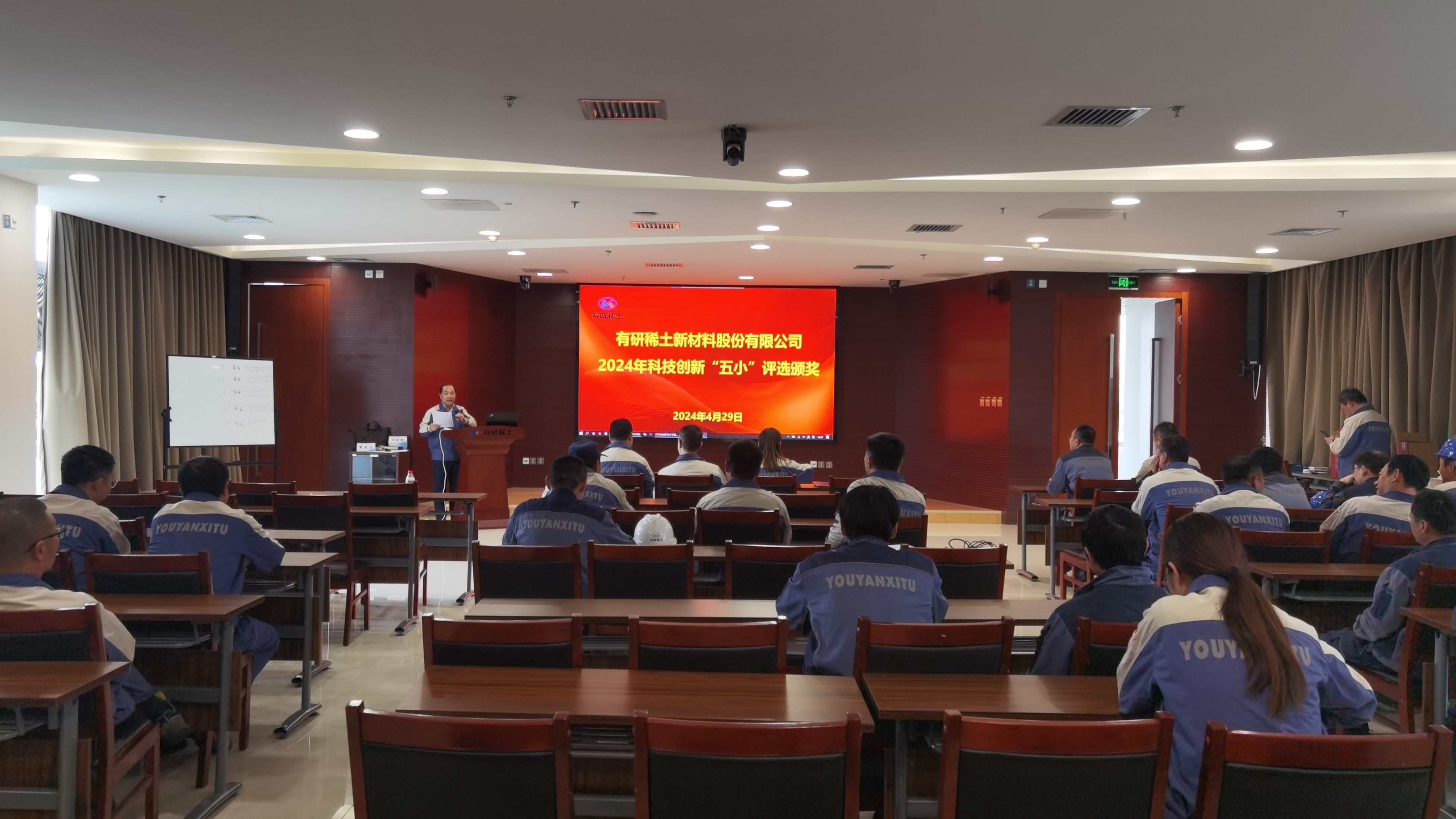稀土在燕郊基地召开了科技创新“五小”表彰大会,公司领导班子成员、各部门负责人及获奖人员50余人参加了会议。