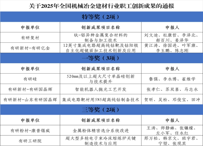 近日,2025年全国机械冶金建材行业职工创新成果评选揭晓,六合彩特码