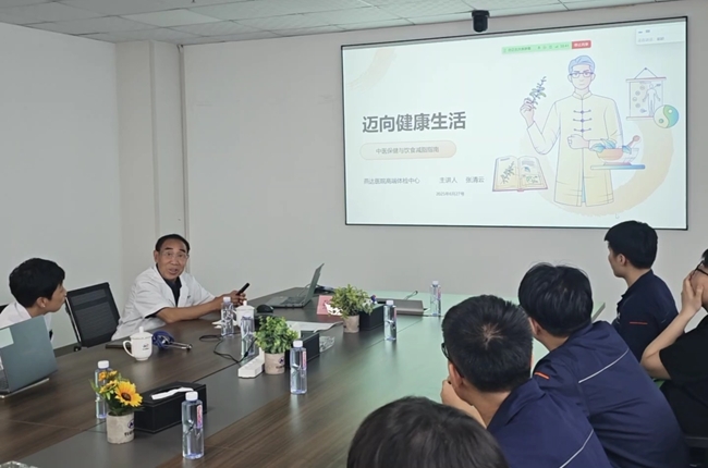 随后,张教授与河北燕达医院科室医生针对职工个人情况进行义诊,内容包含中医号脉、血压血糖测量、测量心电图等内容,现场为职工提供个体化的健康指导。