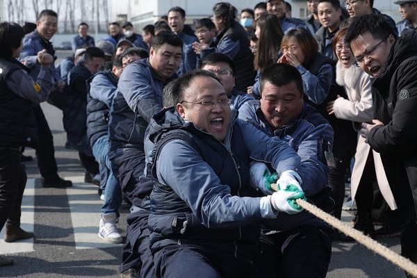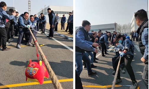 稀土燕郊基地内人头攒动,呐喊助威声此起彼伏,2022年新春“虎虎生威”拔河比赛正在这里隆重举行。
