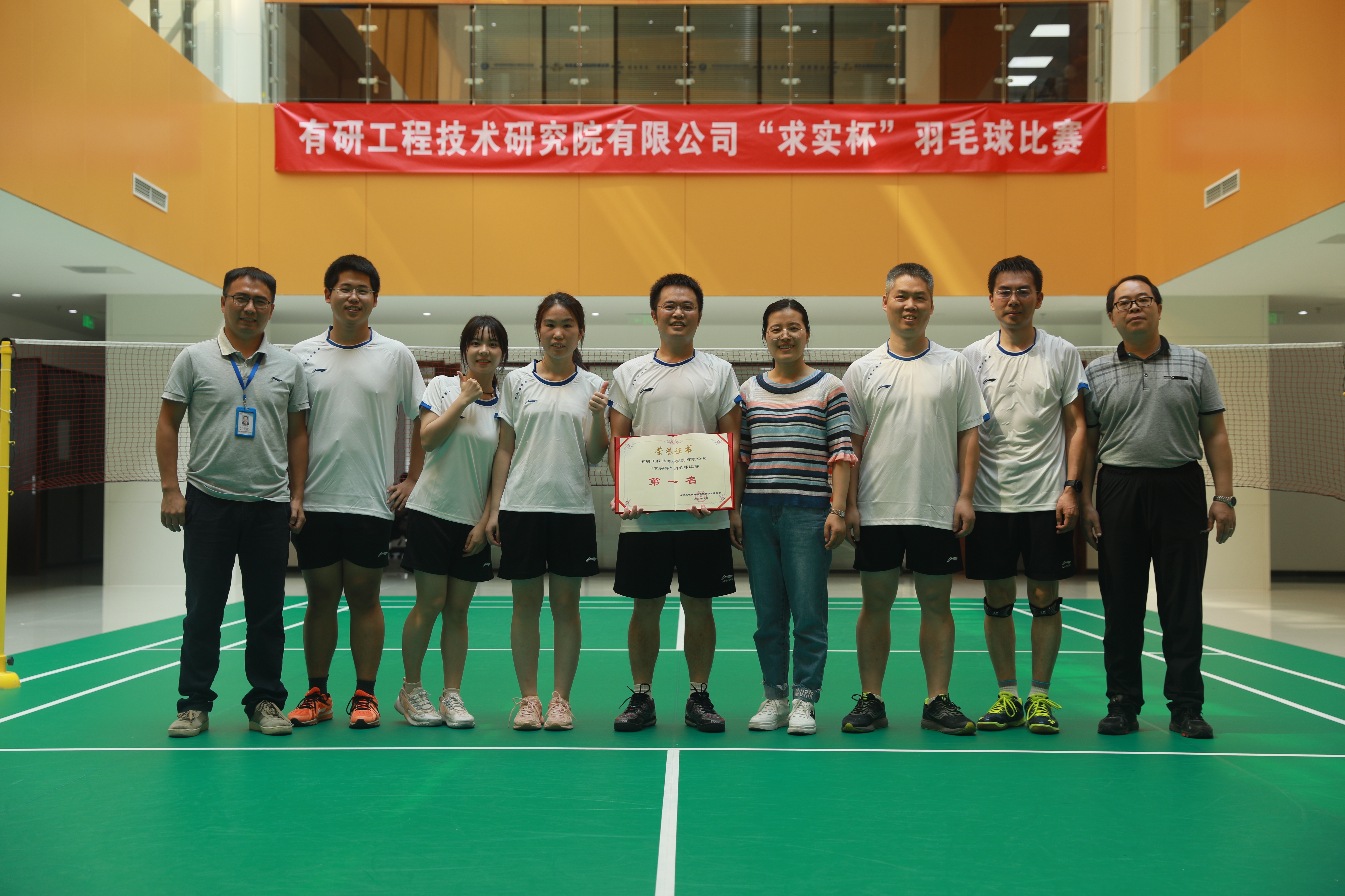 工研院第一届“求实杯”羽毛球团体赛圆满落幕。本届比赛历时8天,共有8支队伍60余人参加比赛,比赛项目包含女子双打、男女混双及男子双打。球场上运动员们情绪高涨,比赛异常激烈、扣人心弦。各部门职工为自己的选手摇旗呐喊,助威声此起彼伏。经过激烈的角逐,最终结构事业部代表队获得第一名,职能部门代表队获得第二名,特种事业部代表队获得第三名。公司党委副书记、纪委书记姚国成为获奖队伍颁奖。