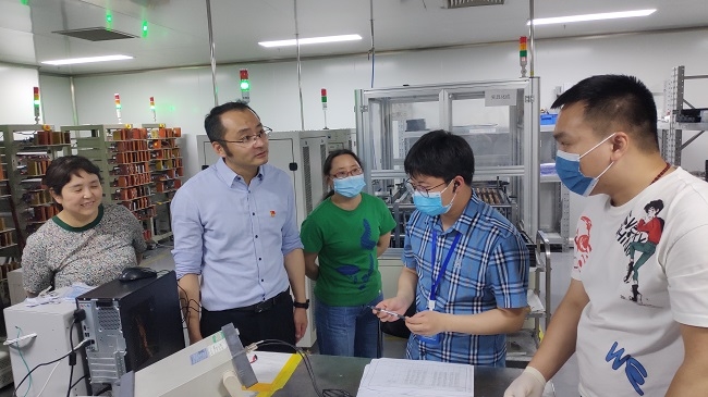 徐冉一行分别来到创新事业部、检测事业部、制造事业部科研生产现场一线,与现场员工亲切交谈,详细了解科研生产进展及员工工作生活情况,代表公司对他们的辛勤付出表示感谢,并送去慰问品。